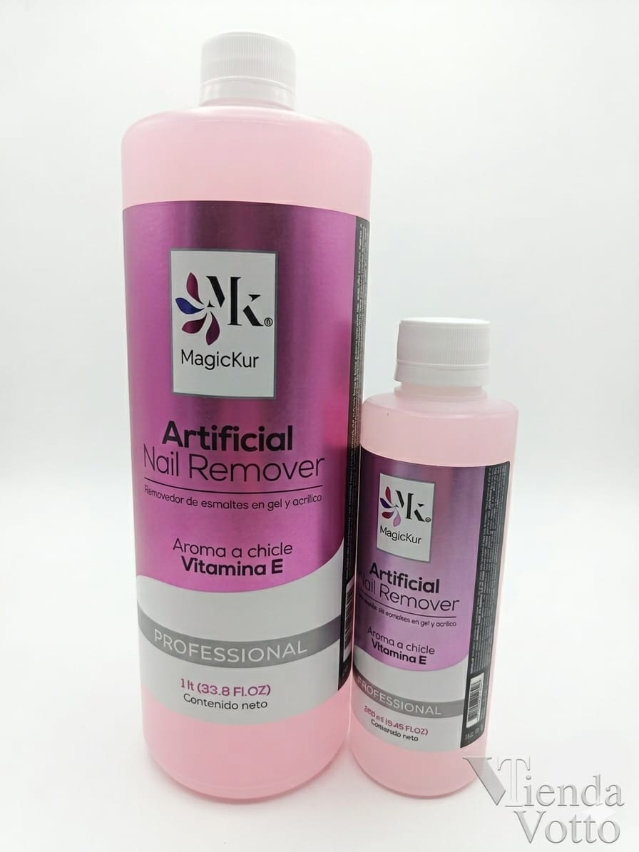 Beneficios: El Artificial Nail Remover de MagicKur es un removedor profesional diseñado para eliminar eficazmente esmaltes en gel y acrílico. Su fórmula actúa de forma rápida sin dañar la uña natural, facilitando el retiro del producto con mayor comodidad. Enriquecido con vitamina E y con agradable aroma a chicle, ofrece una experiencia más suave mientras cuida e hidrata las uñas.