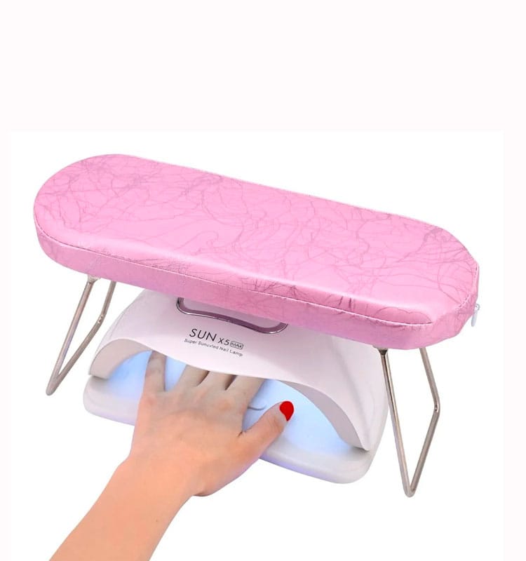 Descripcion : Posa mano con altura es una herramienta utilizada principalmente durante la aplicación de esmalte de uñas o para realizar trabajos de precisión en las uñas. Este accesorio está diseñado para ofrecer un soporte elevado y estable a la mano, ayudando a mantener una posición cómoda mientras se realizan trabajos como manicura, pedicura
